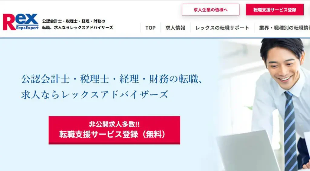 REXアドバイザーズは高いマッチング度と豊富な転職実績、充実したサポートサービスを提供している会計士、税理士、管理部門経験者向けの転職エージェントです。
