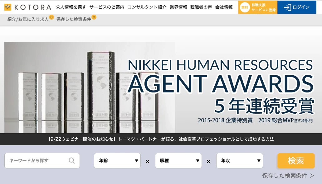 コトラはプロフェッショナル人材の転職に特化した転職エージェントです。