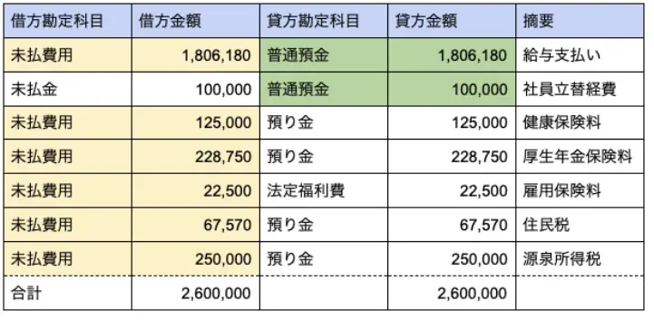 ※分割を行った部分は「未払費用」と「普通預金」です。