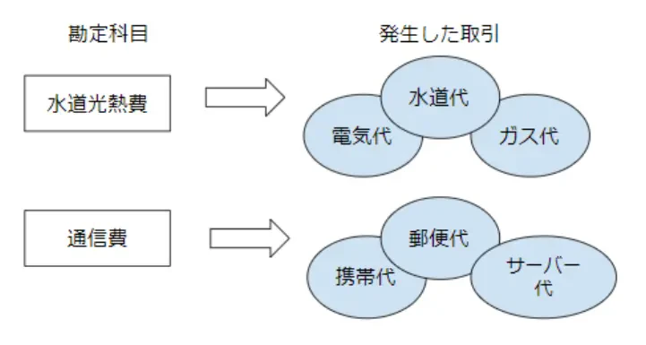 それでは、それぞれの箱ごとの勘定科目を見ていきましょう。