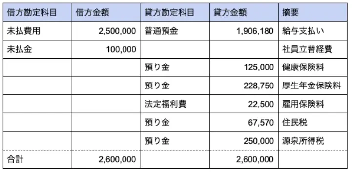 借方科目 | 金額 | 貸方科目 | 金額 |