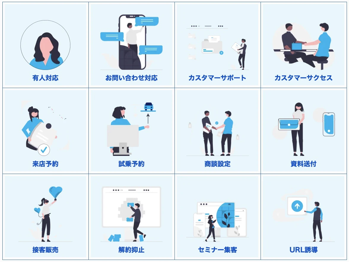 また、対応しているメッセージはInstagram、LINE、Facebook、Twitter、お問い合わせフォーム/チャットと幅広く、複数チャネルでの有人対応が可能になっています。