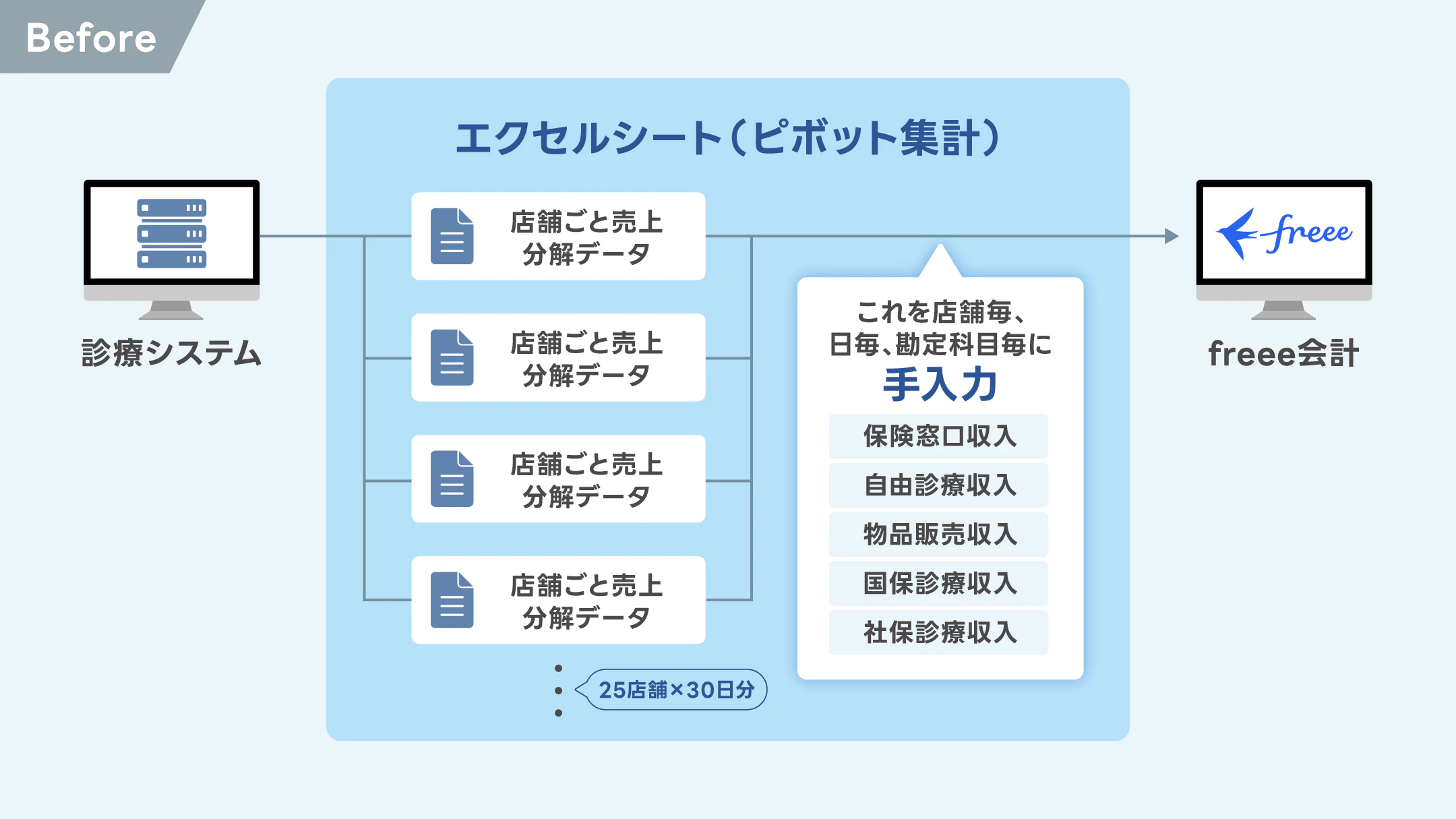 効果 | 毎月の院別利益率把握、月20時間の作業削減、投資対効果分析が可能に |